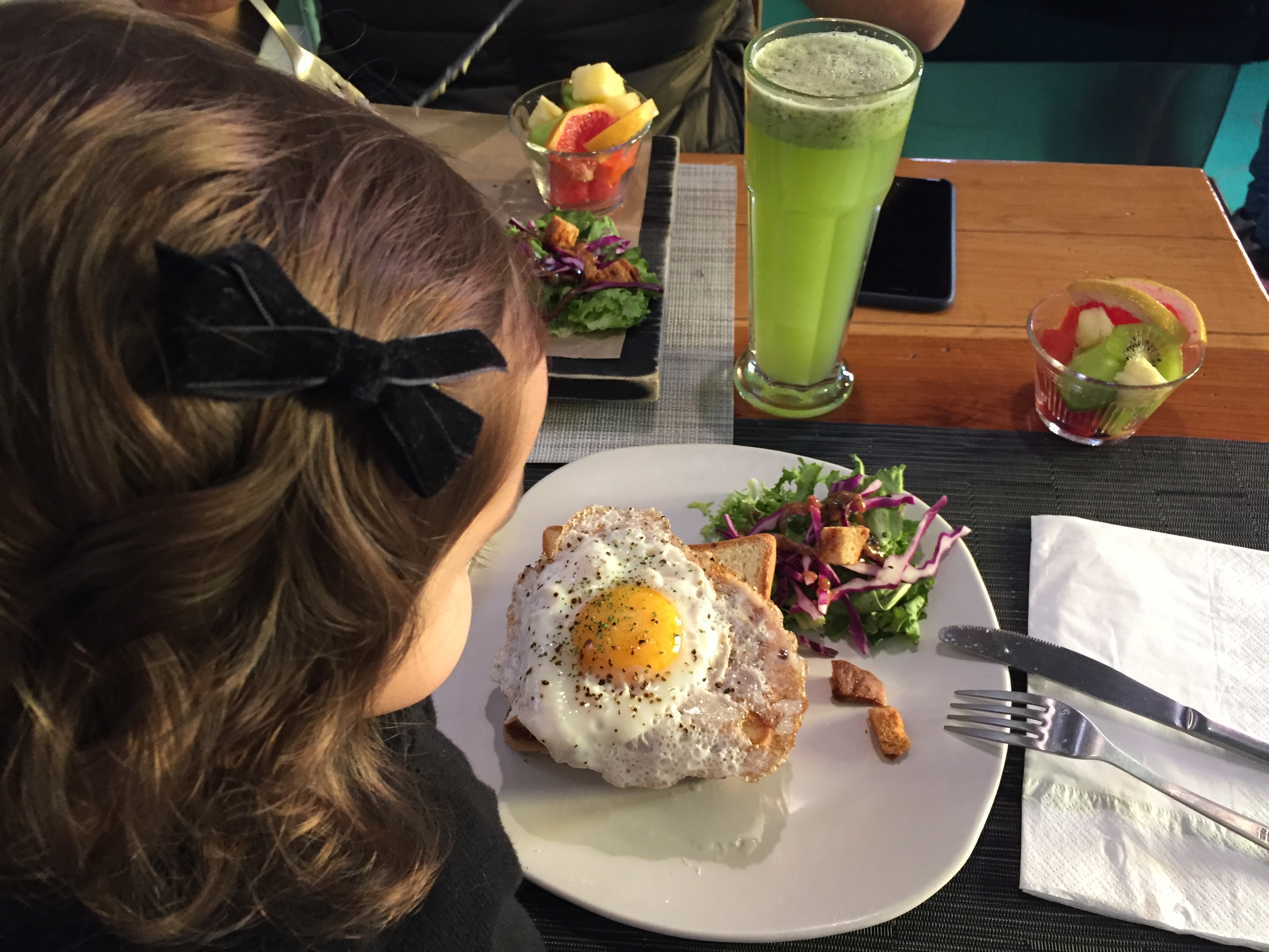 Este es mi gran favorito. Me encanta el lugar y la comida para desayunar es deliciosa. Cuando vamos, generalmente en plan con amigos, el tiempo se nos pasa volando; empezamos tomando jugo y cuando acordamos ya estamos pidiendo una cerveza. Hace 2 años escribí una extensa reseña del lugar, y desde entonces han cambiado lógicamente varias cosas, entre ellas que ya tienen un área para niños con columpios, casitas de madera, amplio jardín empastado, y un espacio para manualidades con niñeras. La desventaja es que esta área no está a la vista desde la zona de comida, pero nosotros lo que hemos hecho también es llevarnos juguetes y les dejamos a los niños un espacio en la mesa (que por cierto son muuuy amplias) y ahí se entretienen sobre todo con los Legos. Y bueno en el patio de la zona de comida, también hay mesas de ping pong y futbolitos para recreación de grandes y chicos. ¡No dejen de probar el atole de Chai!